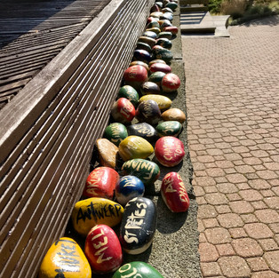 My painted stones look lovely in the autumn sunshine. A nice reminder of places I have visited.